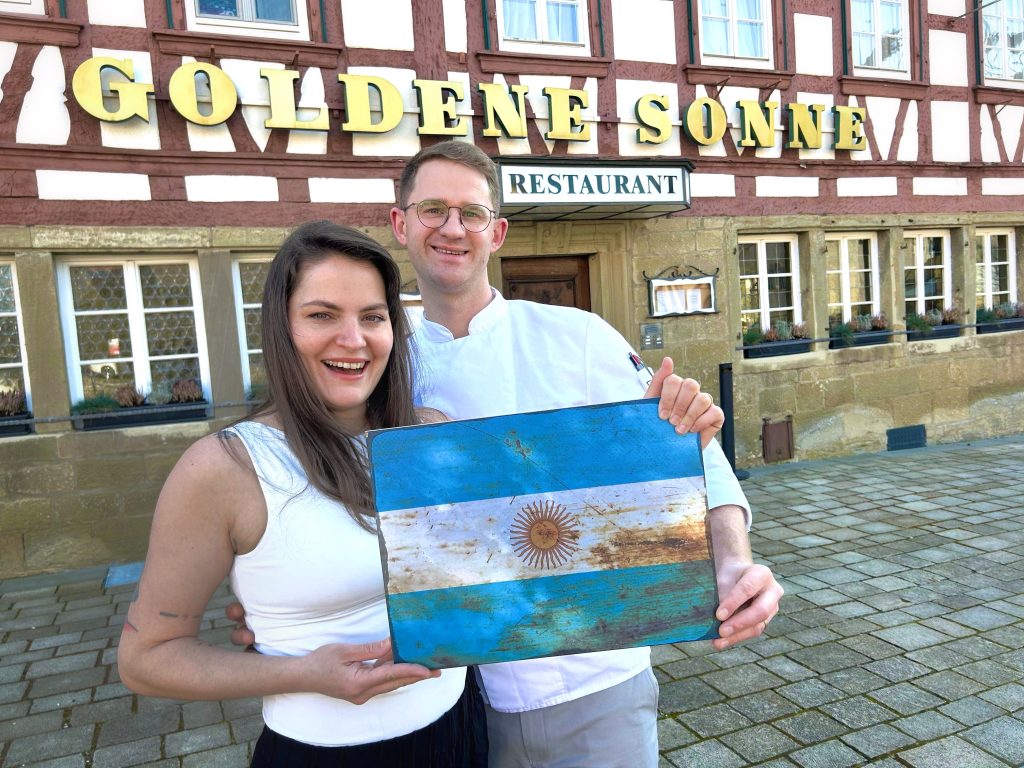Seit Mai 2022 werden in der Goldenen Sonne handwerkliche Exzellenz mit gemütlicher Gastlichkeit kombiniert. Heiner Bohnet kreiert wöchentlich eine neue Menüfolge, bei der edelste Produkte aus der Region und französische Kochtradition harmonisch aufeinandertreffen. Constanza Piccolos Weinbegleitung stammt aus jungen sowie renommierten Weingütern Europas und Argentiniens.